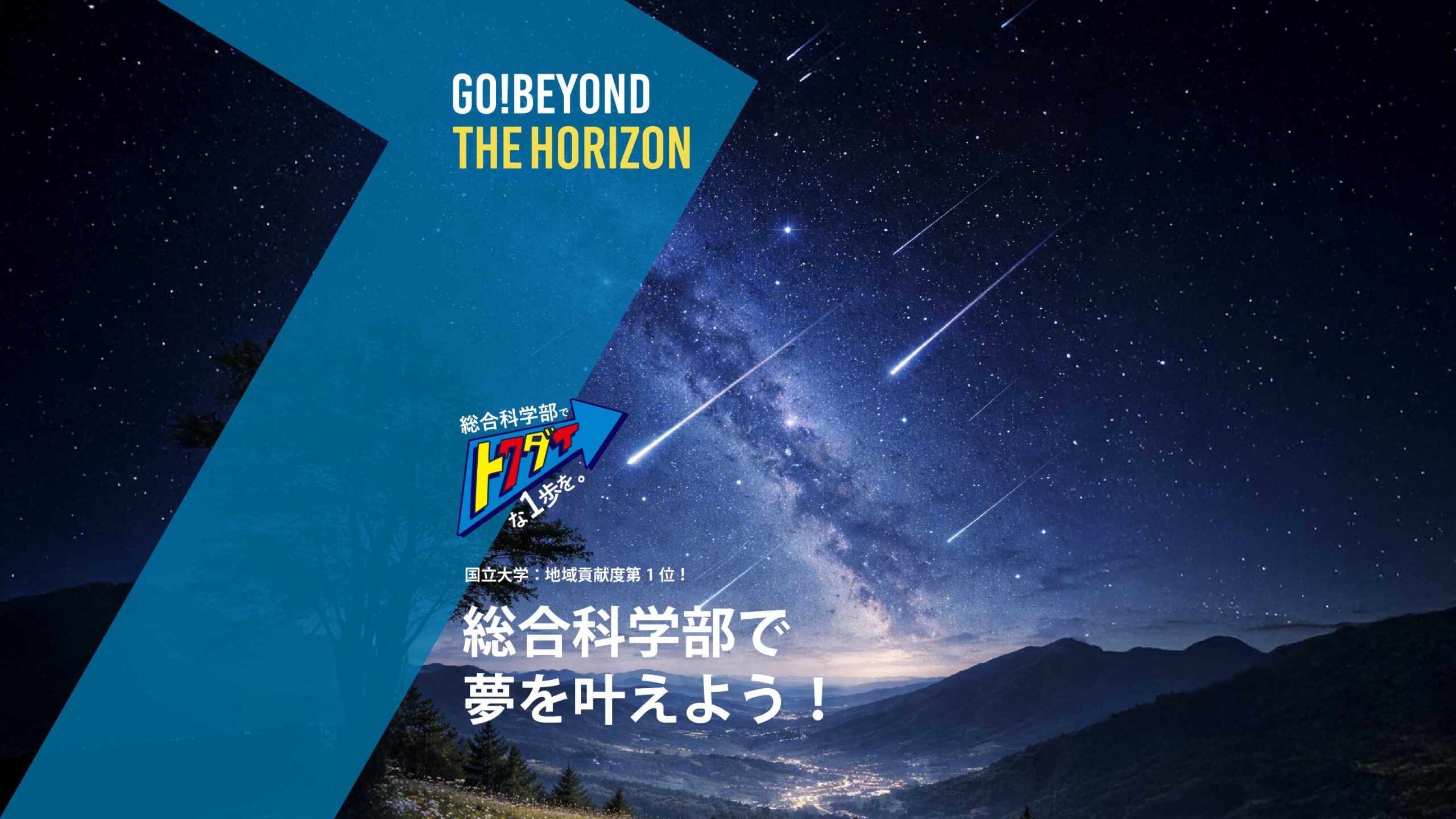 総合科学部はグローバルな視点から実践的に学びを深める最高の場所です。常に社会的課題に取り組むこの学部は、すぐ目の前に学びの場があり、常に目の前にある地域課題を基盤に学習に取り組む、フィールドワークに力を入れています。多元的で多様な課題に対応できる総合的な実践力を身につけるには、グローバルな視点から多様な分野を基盤的に学び、それらを応用する実践力が必要です。海外への留学、国際的視点にたった研究、留学生との学びの共有にも力を入れ、多数ある大学の中でも実践的な教育・研究力に秀でています。今まさに社会で求められる人間力を総合科学部は提供するのです。総合科学部の教育は就職に強く、社会の中で輝く優秀な人材を輩出します。